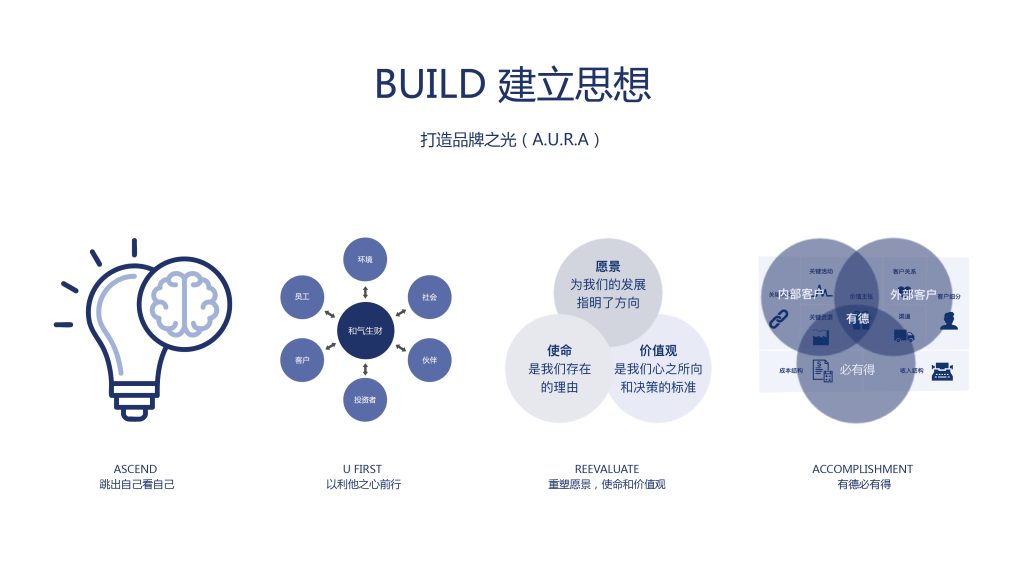 反观今天的我们,创业一开始的思想就是错误的,这就是为什么,我们品牌战略B.A.D理念的第一个步骤就是要建立一个正确的思想,这个思想是大于赚钱的,是利益他人的,是充满爱和喜悦的。这就是为什么我在很多文章里都提到了一句话,那就是追求你的愿景,而非金钱,最终钱会跟着你走。就是这个道理,愿景就是你的思想,是利于他人的,是激动人心的,是鼓舞人心的,是发自你内心的纯粹,是最大的所谓竞争力,这样的心态就是富足,如果你可以把你的这种心的能量传递给你的团队(统一思想的重要性就在于此),那么你们的集体能量场就会很大,而什么样的集体能量场/意识状态,就会吸引对应的人事物。